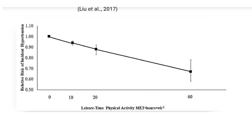 Liu, X., Zhang, D., Liu, Y., Sun, X., Han, C., Wang, B., Ren, Y., Zhou, J., Zhao, Y., Shi, Y., Hu, D., & Zhang, M. (2017). Dose-Response Association between Physical Activity and Incident Hypertension: A Systematic Review and Meta-Analysis of Cohort Studies. Hypertension, 69(5), 813–820. https://doi.org/10.1161/HYPERTENSIONAHA.116.08994
